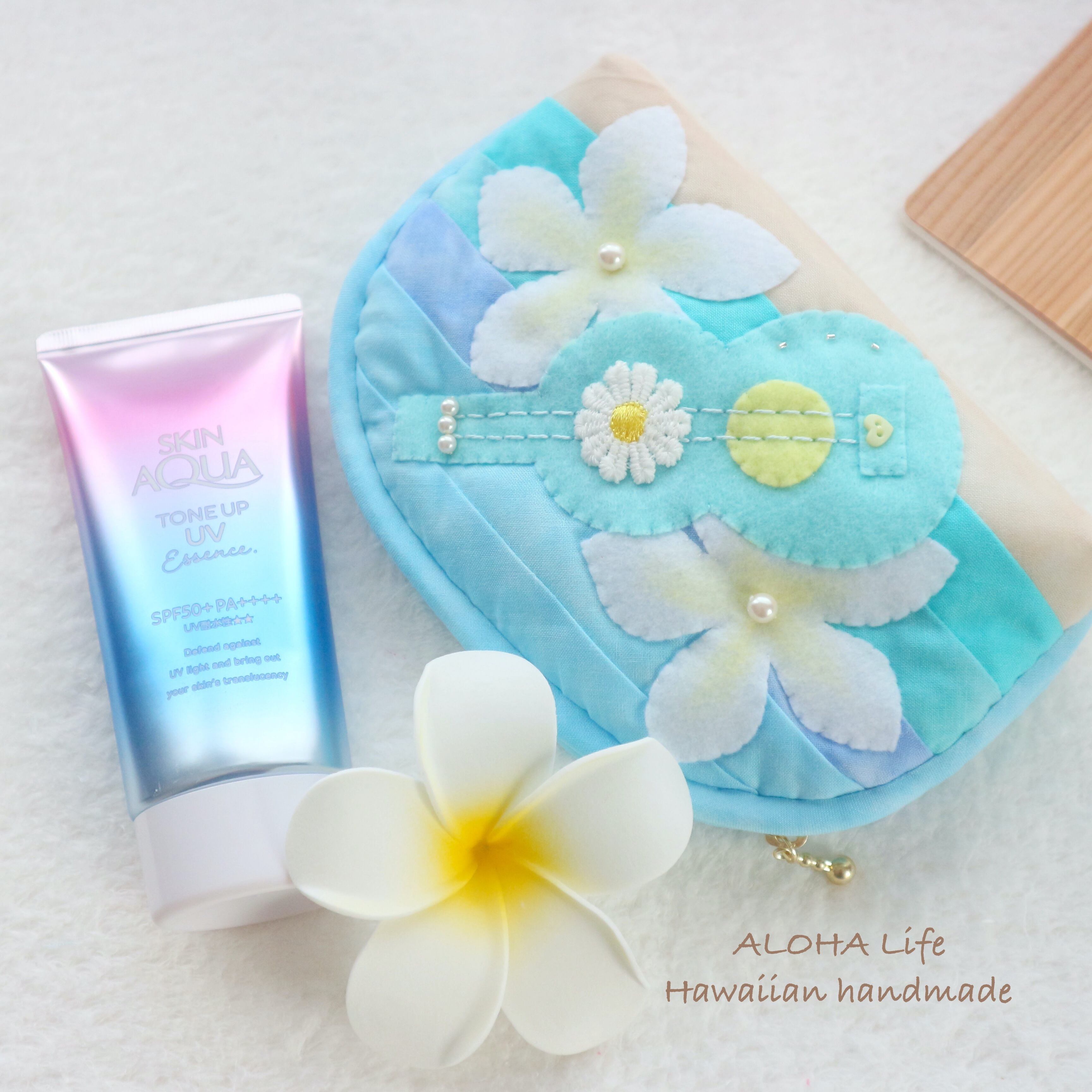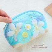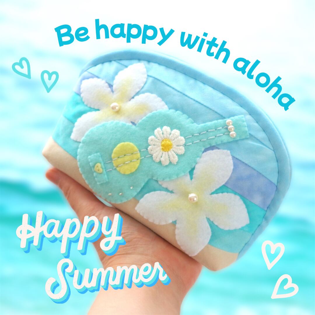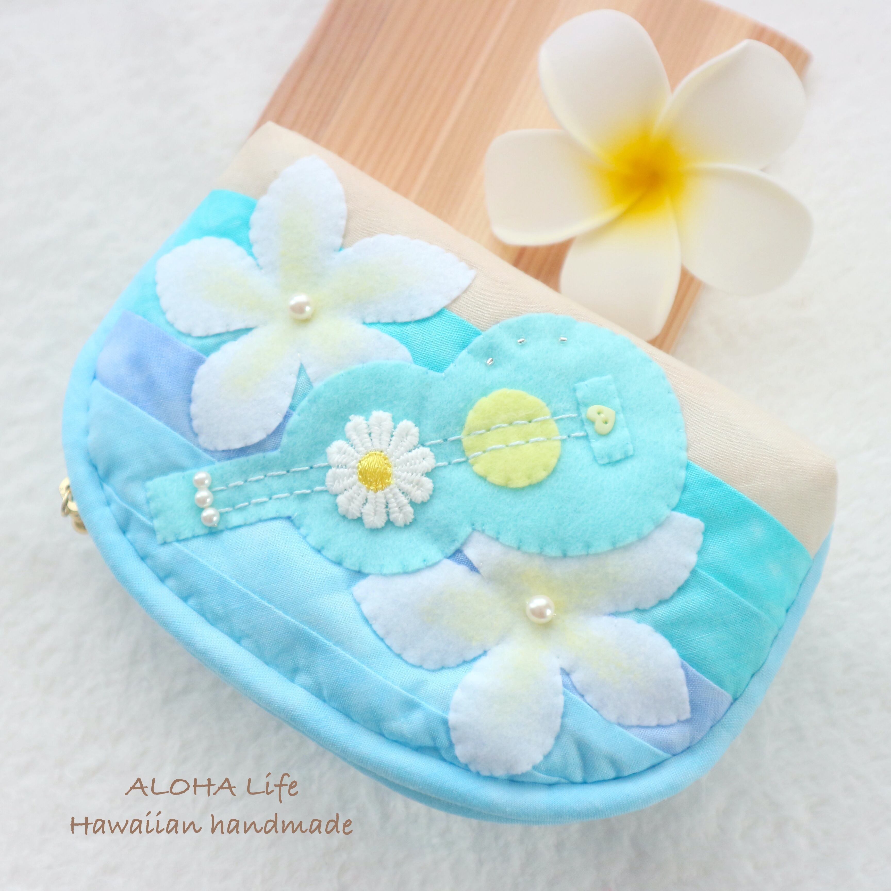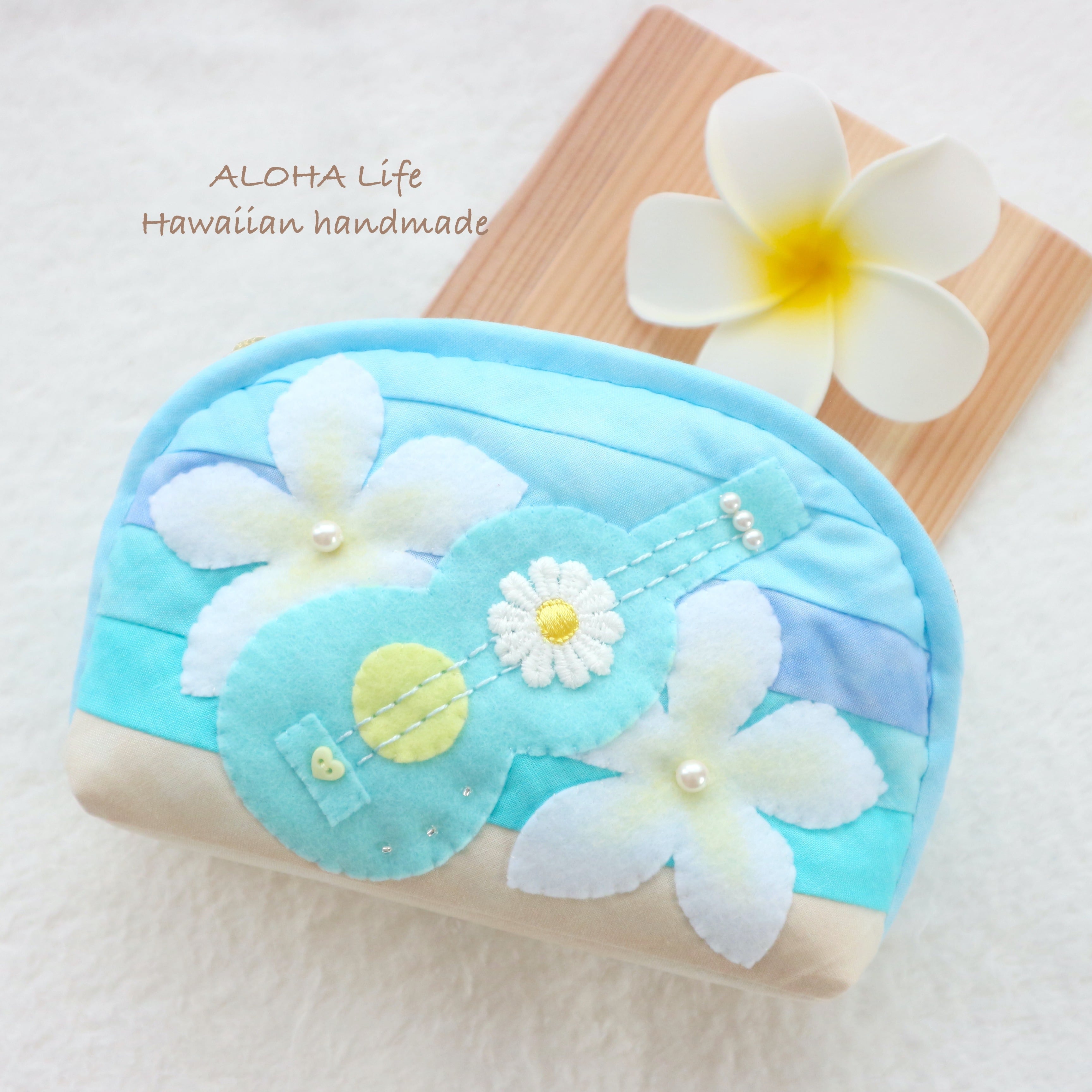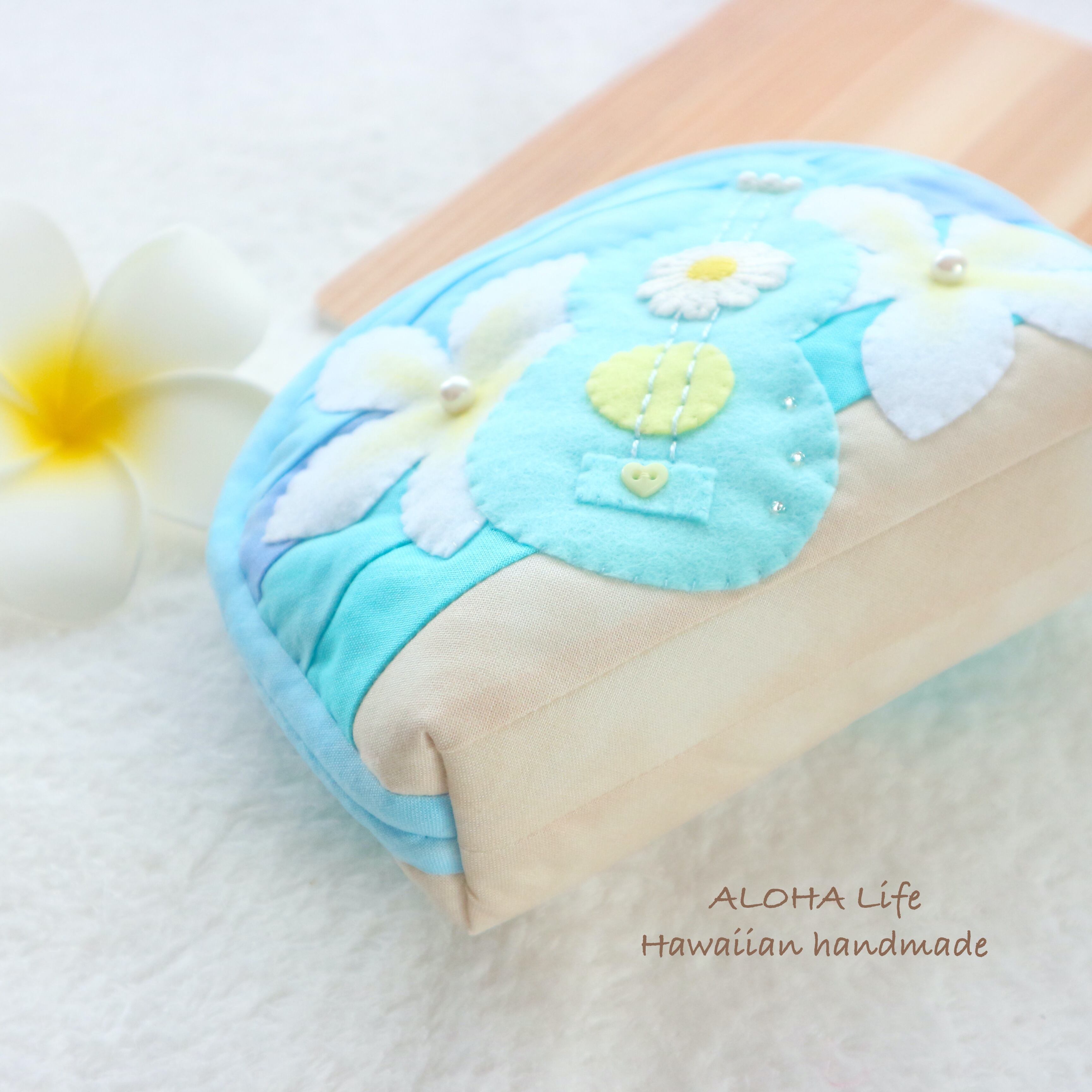 Hawaiian quilt pouch *Ukulele & Plumeria*
