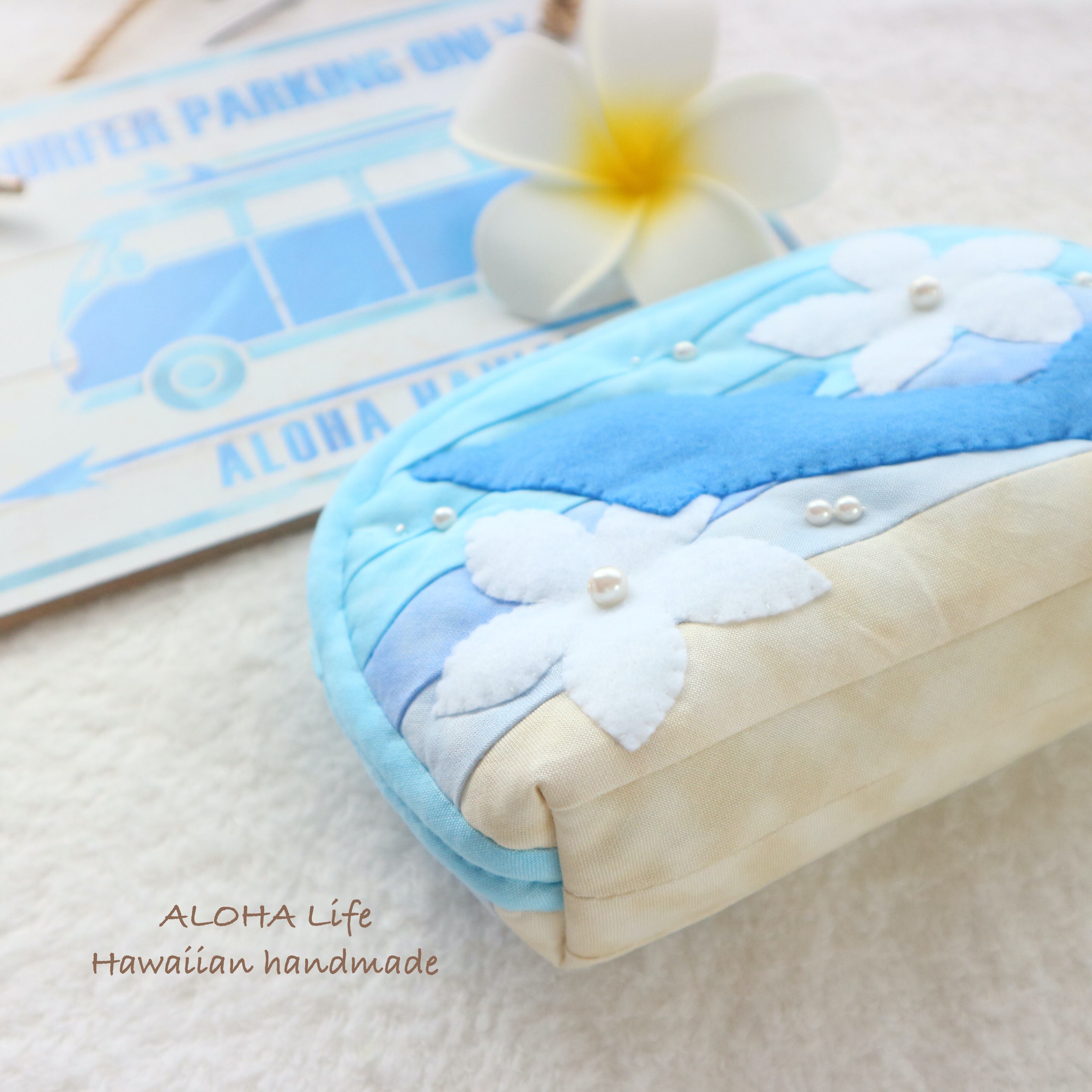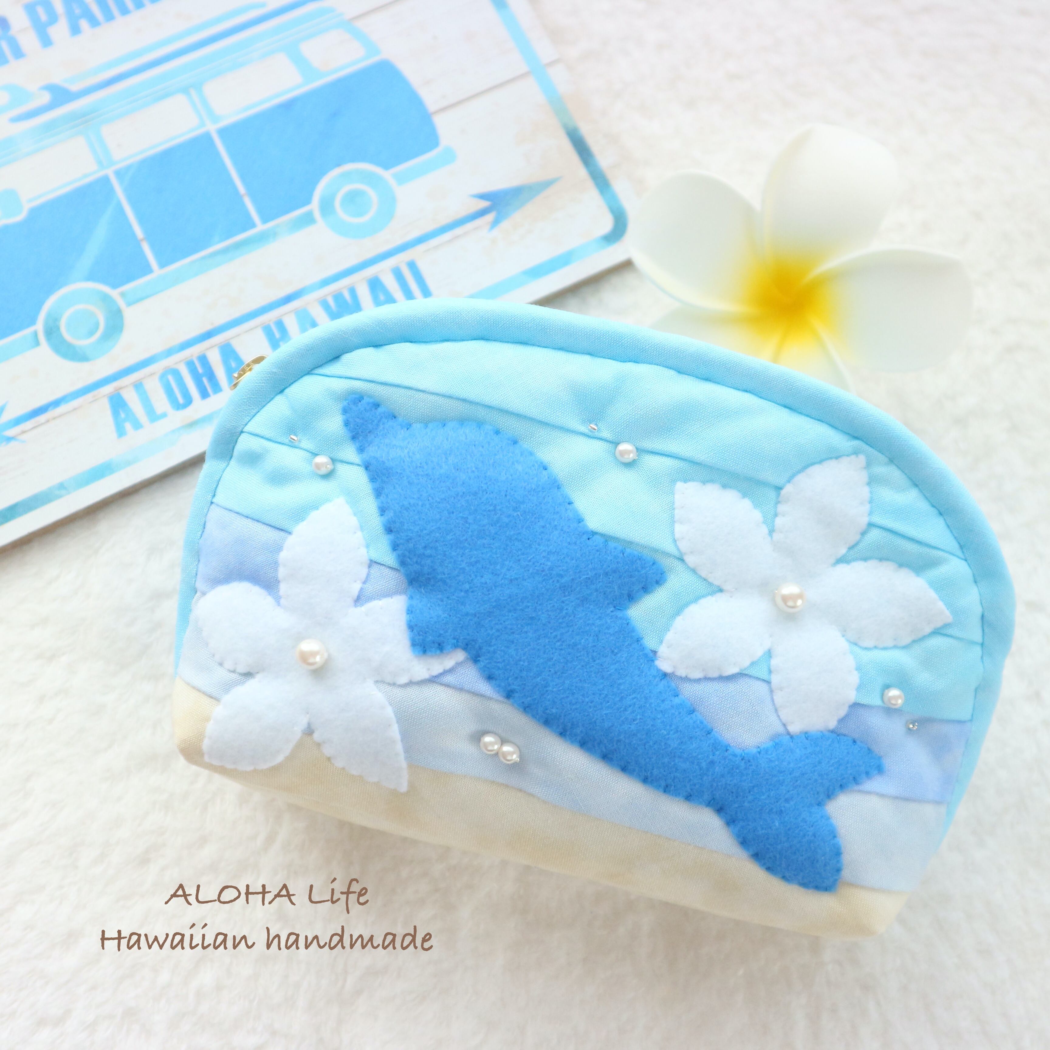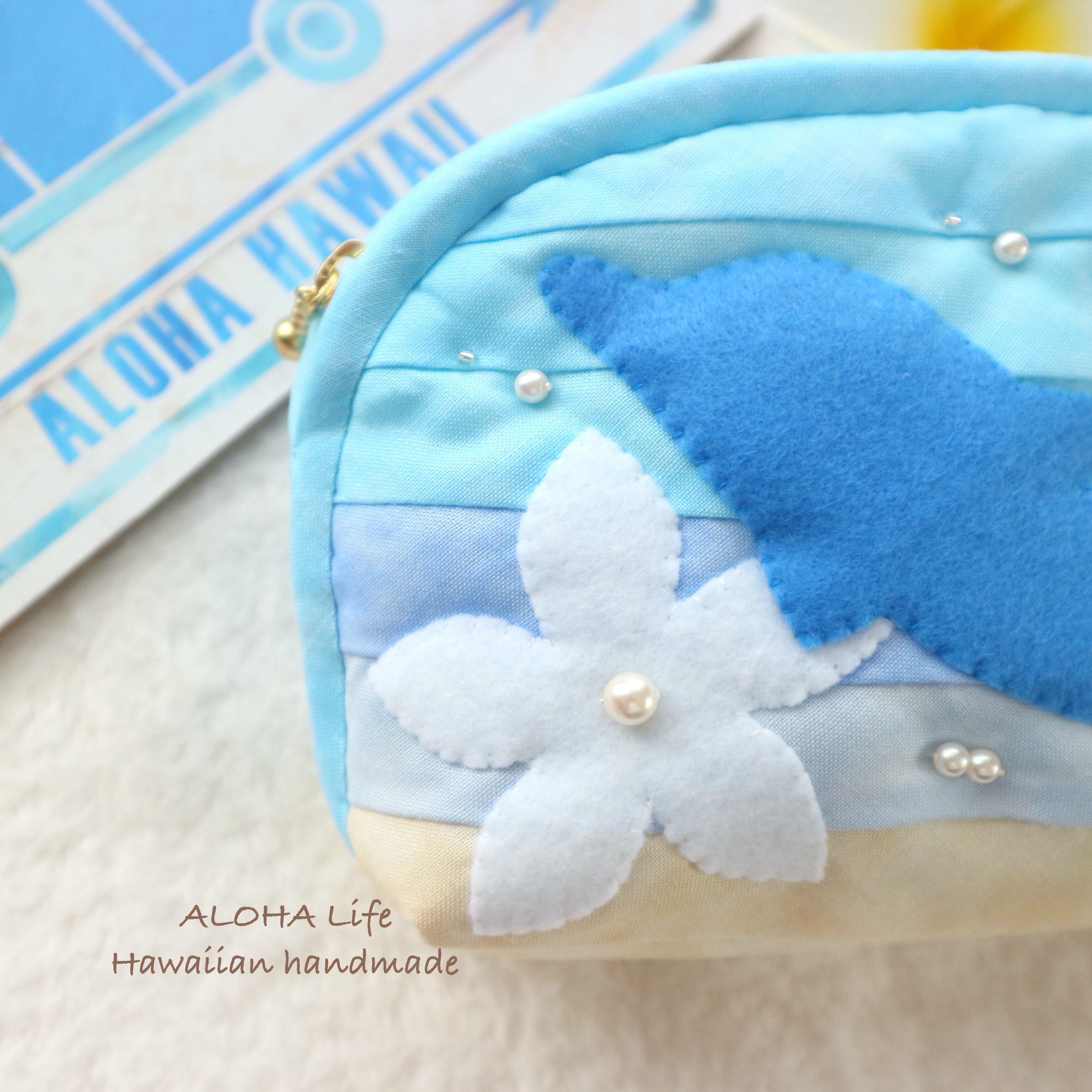 Hawaiian quilt pouch *Dolphin & plumeria*