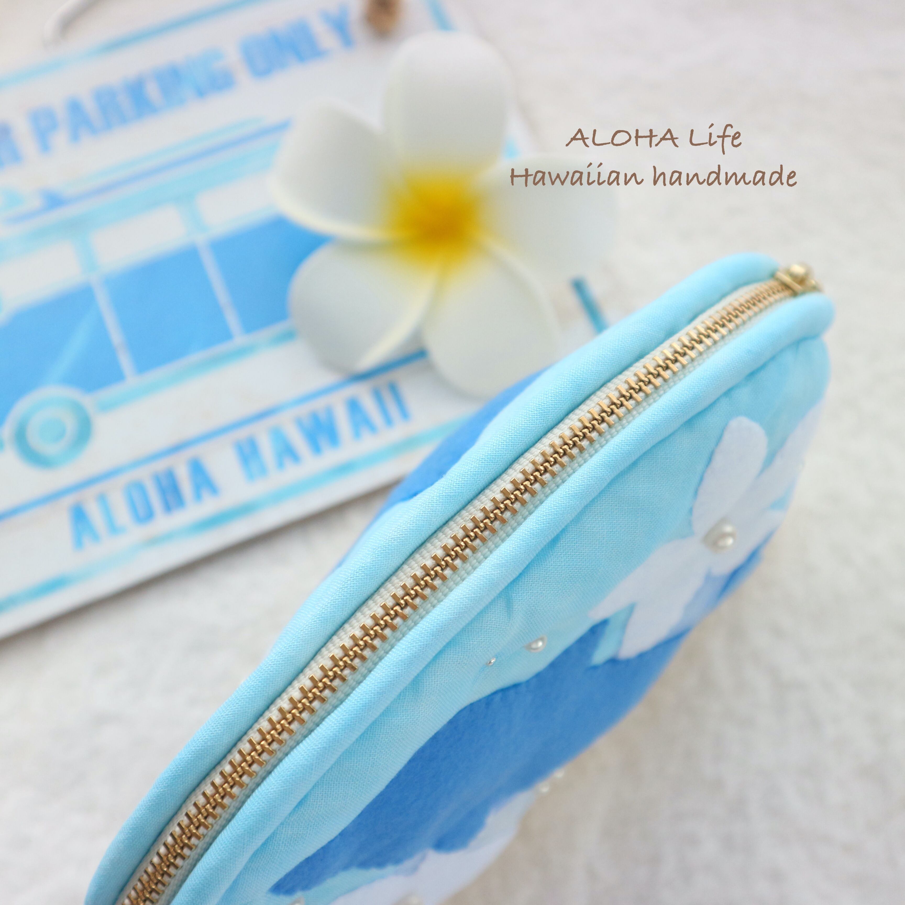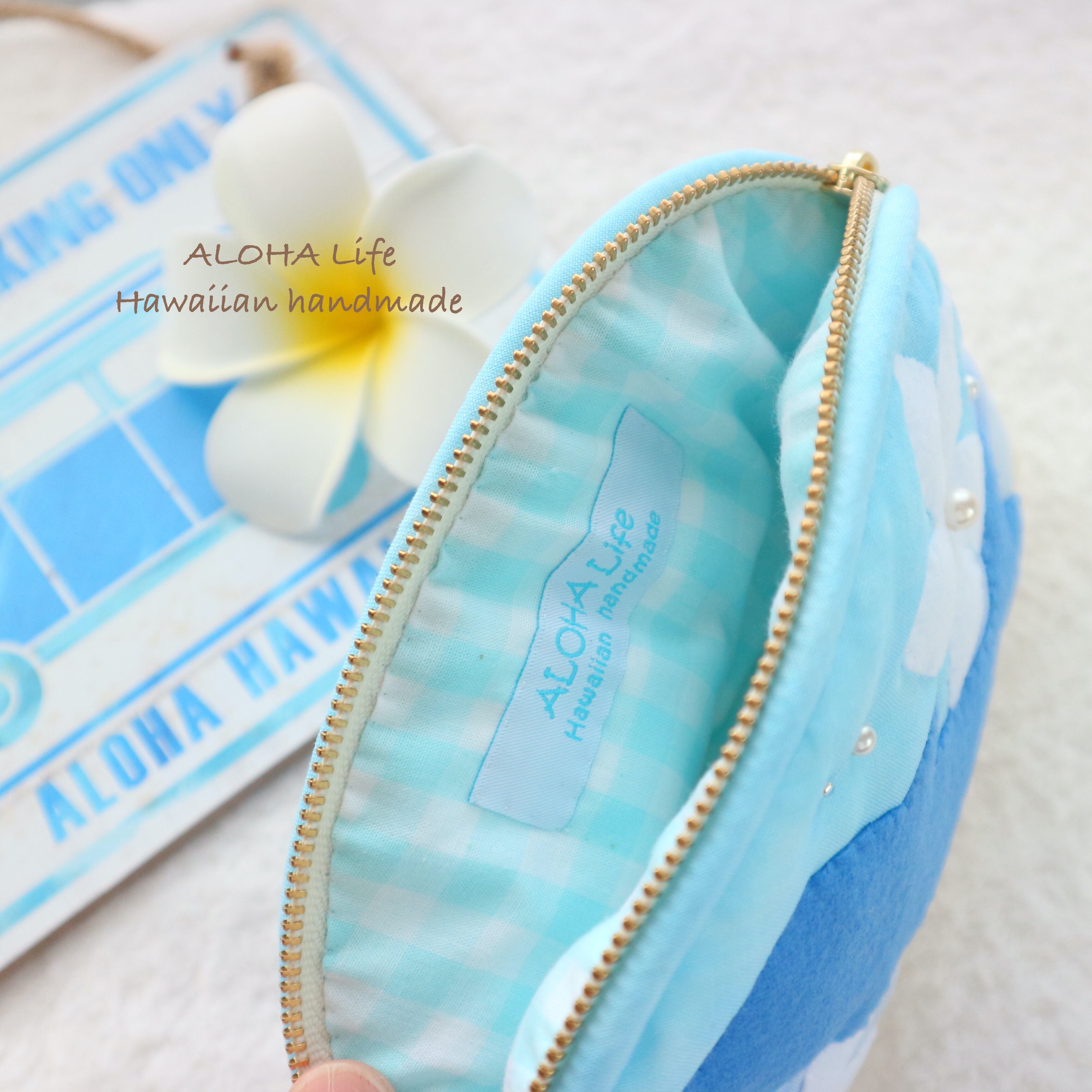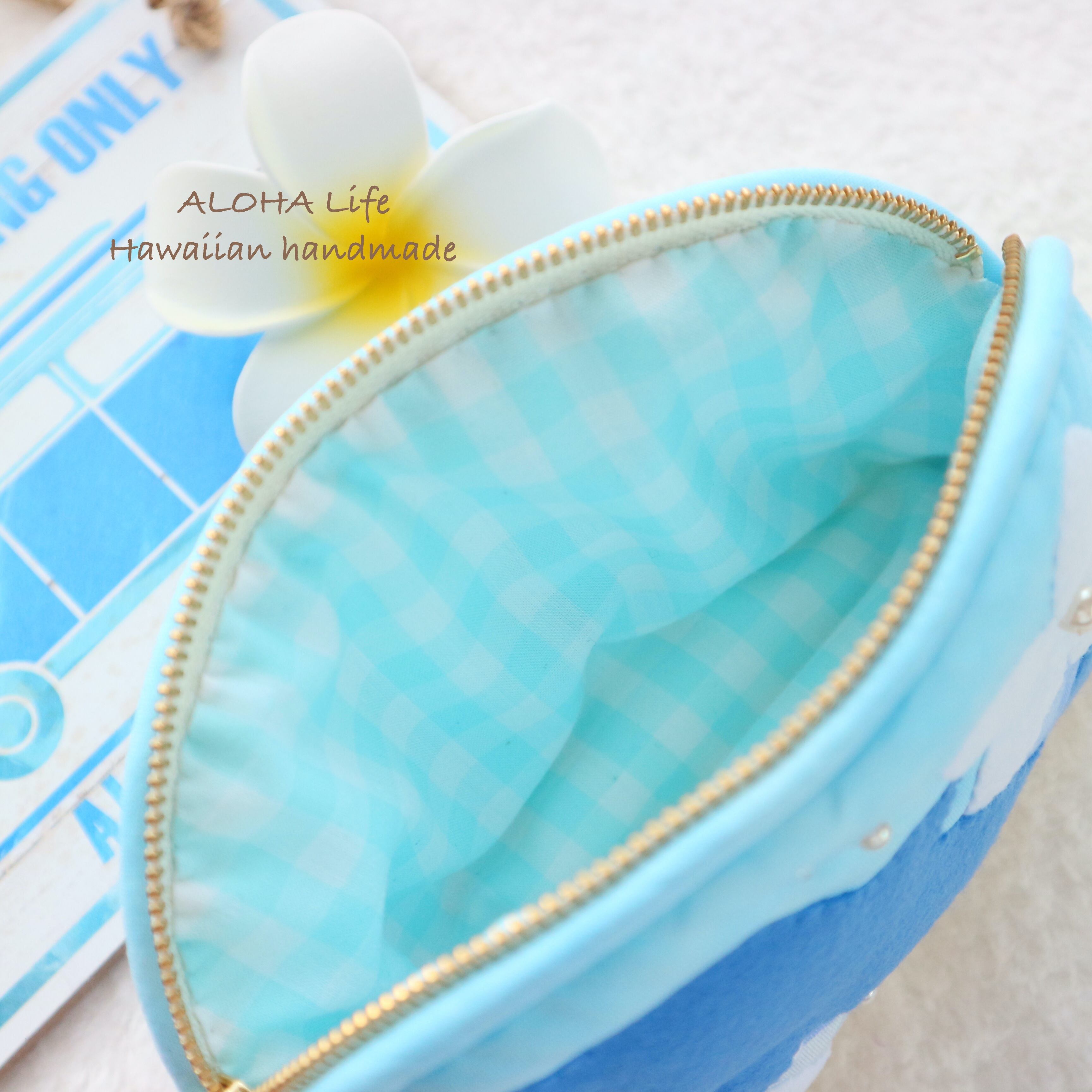 Hawaiian quilt pouch *Dolphin & plumeria*