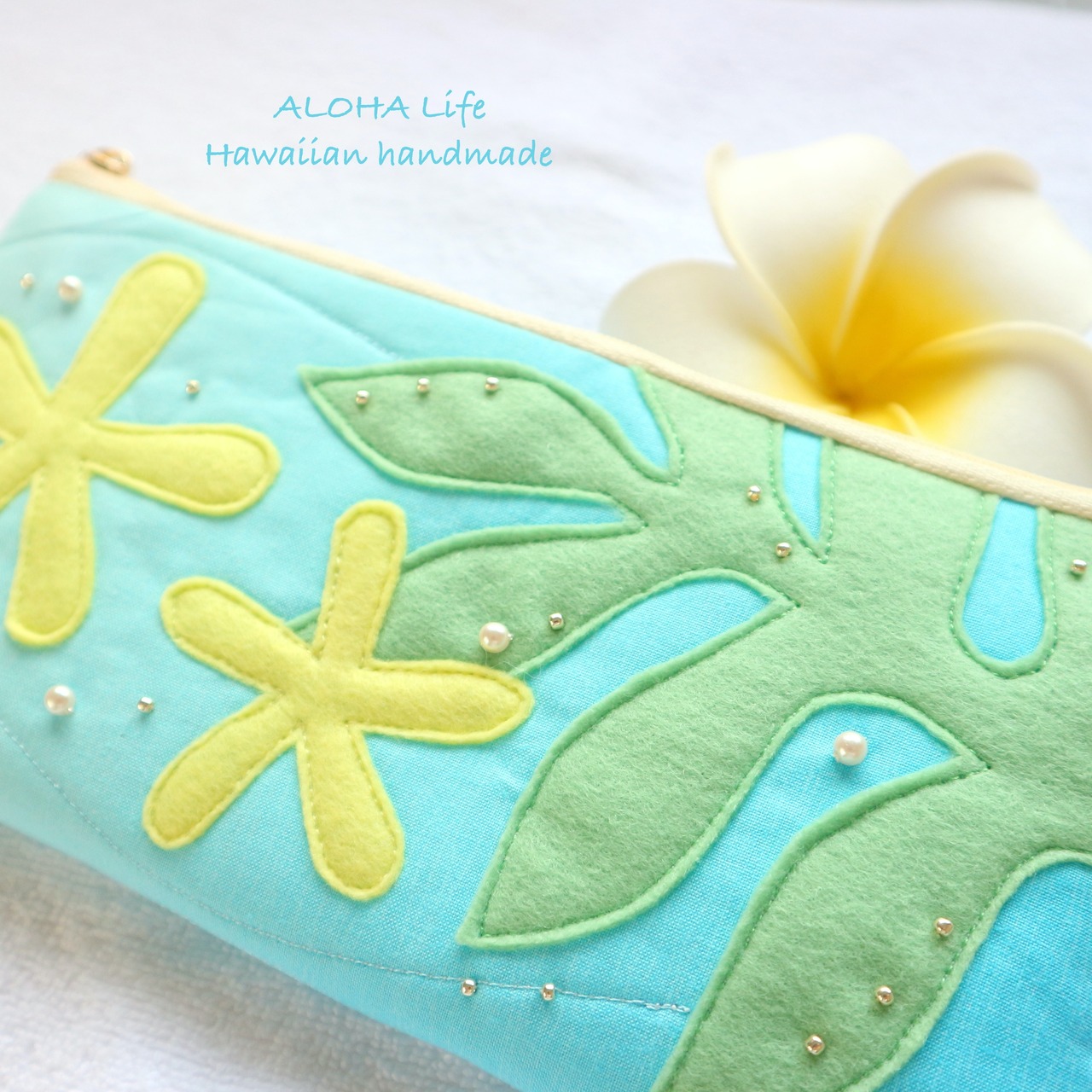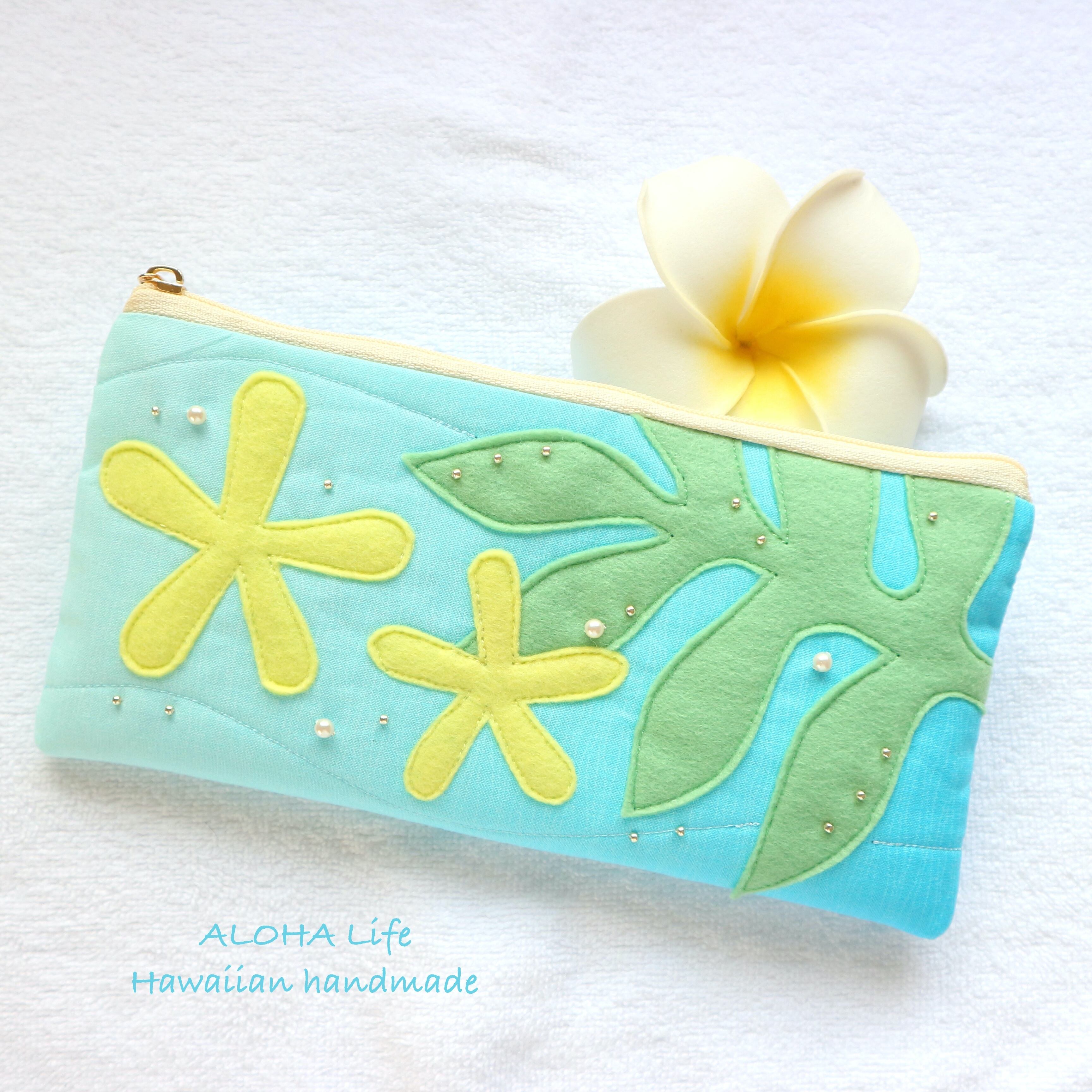 フェルト素材のイエロープルメリアデザインが可愛いポーチ