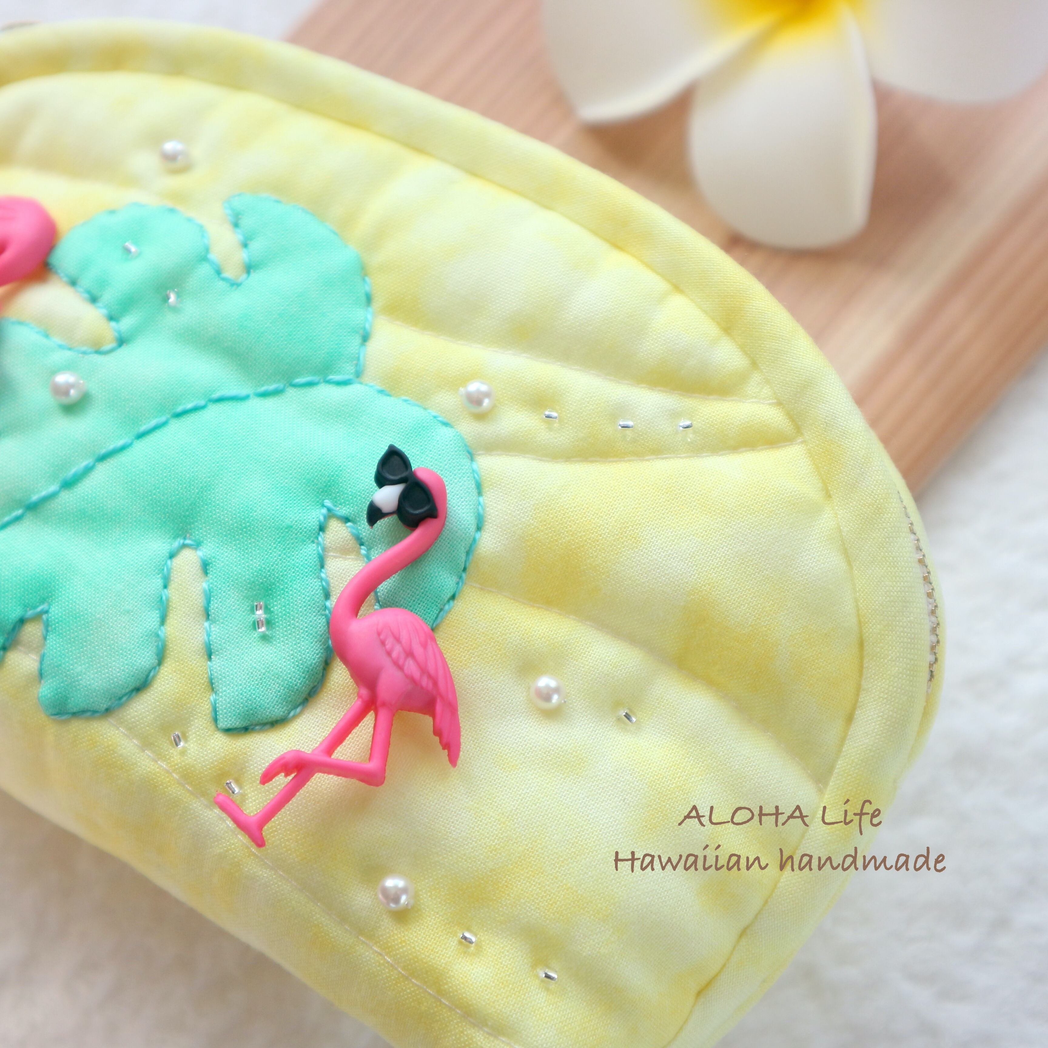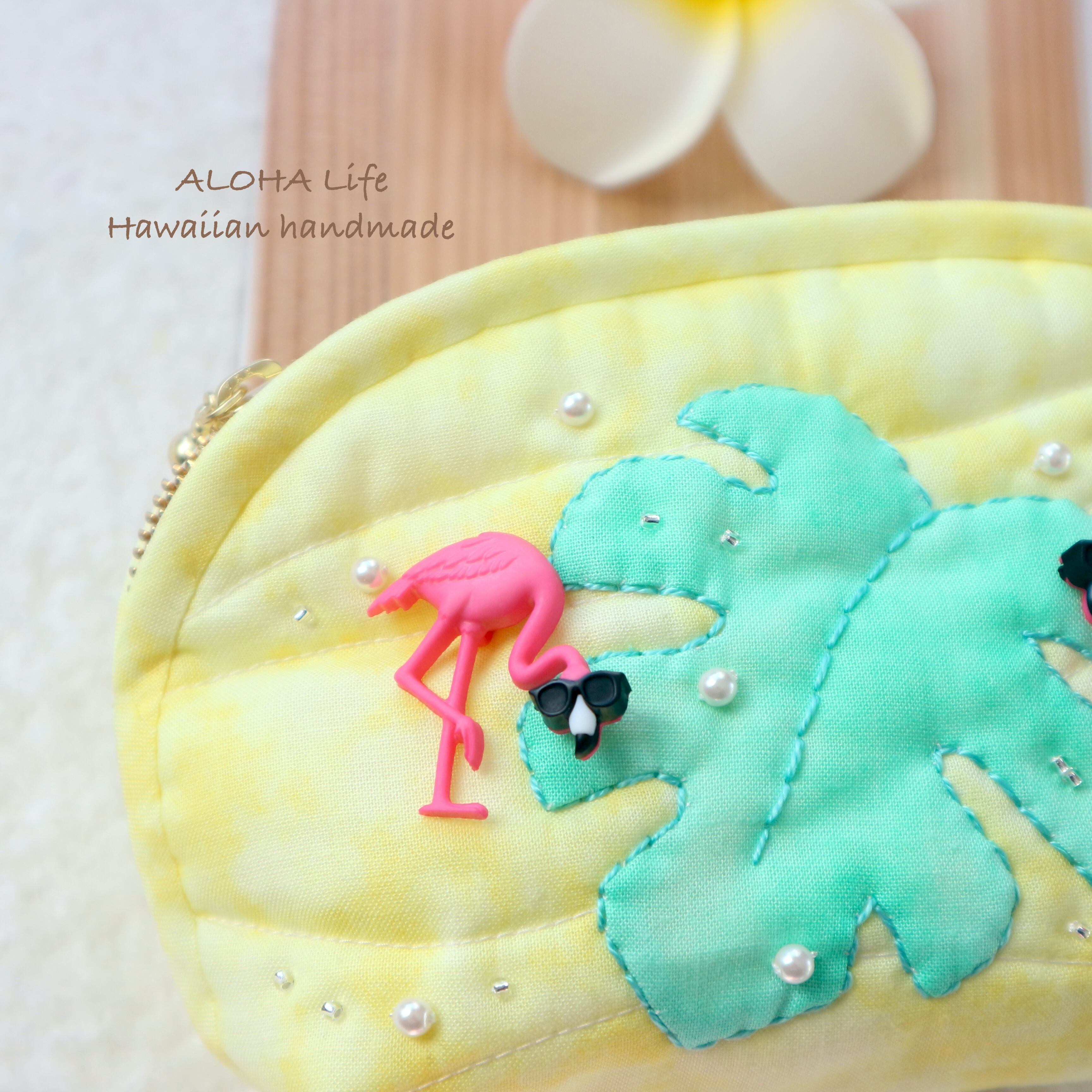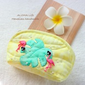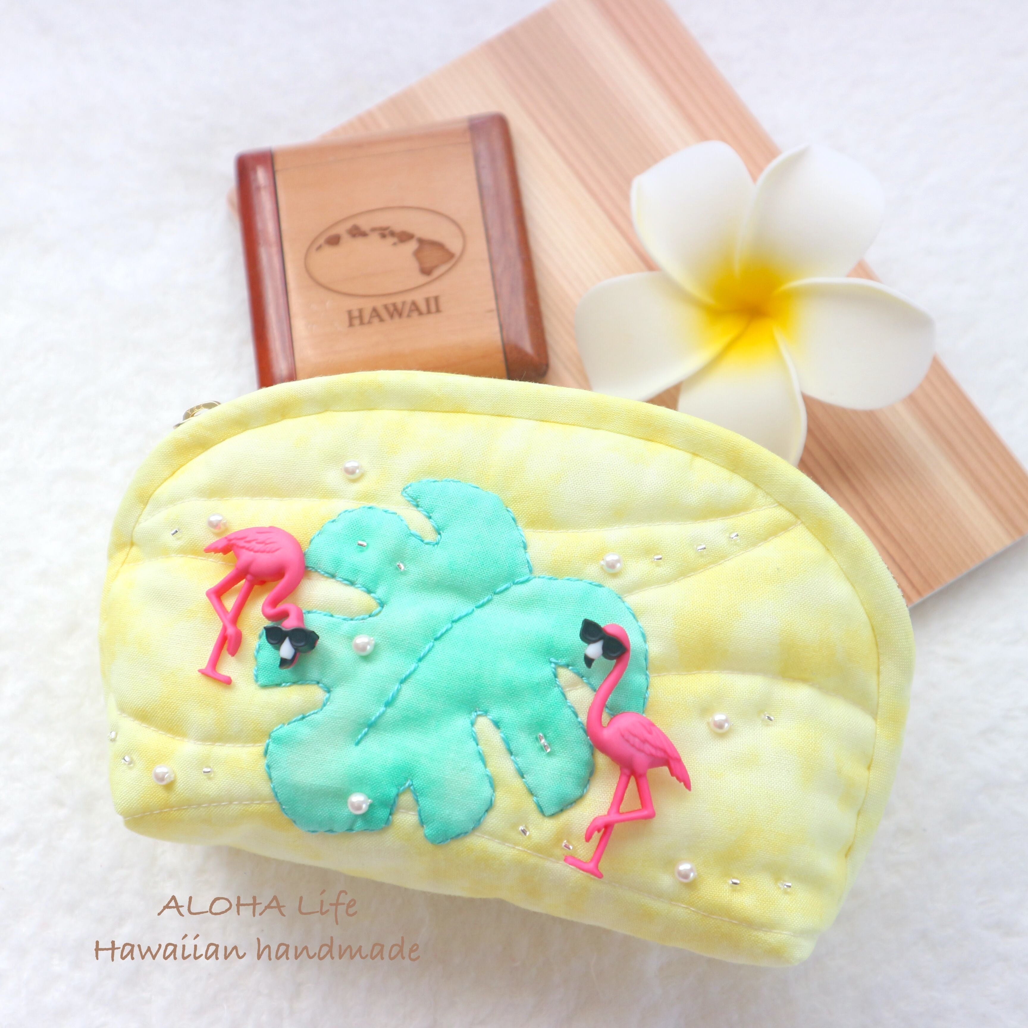 Hawaiian quilt pouch Flamingo×monstera