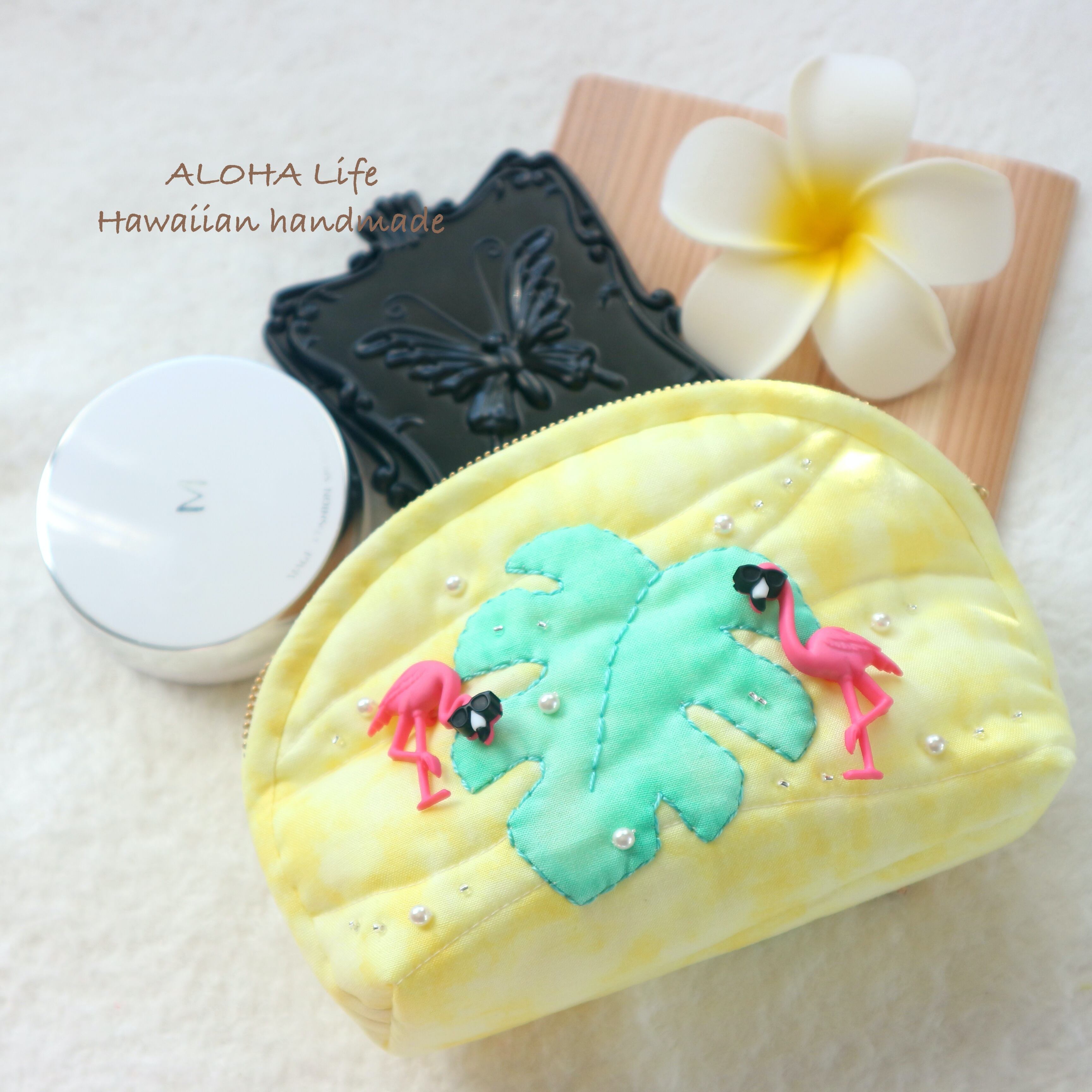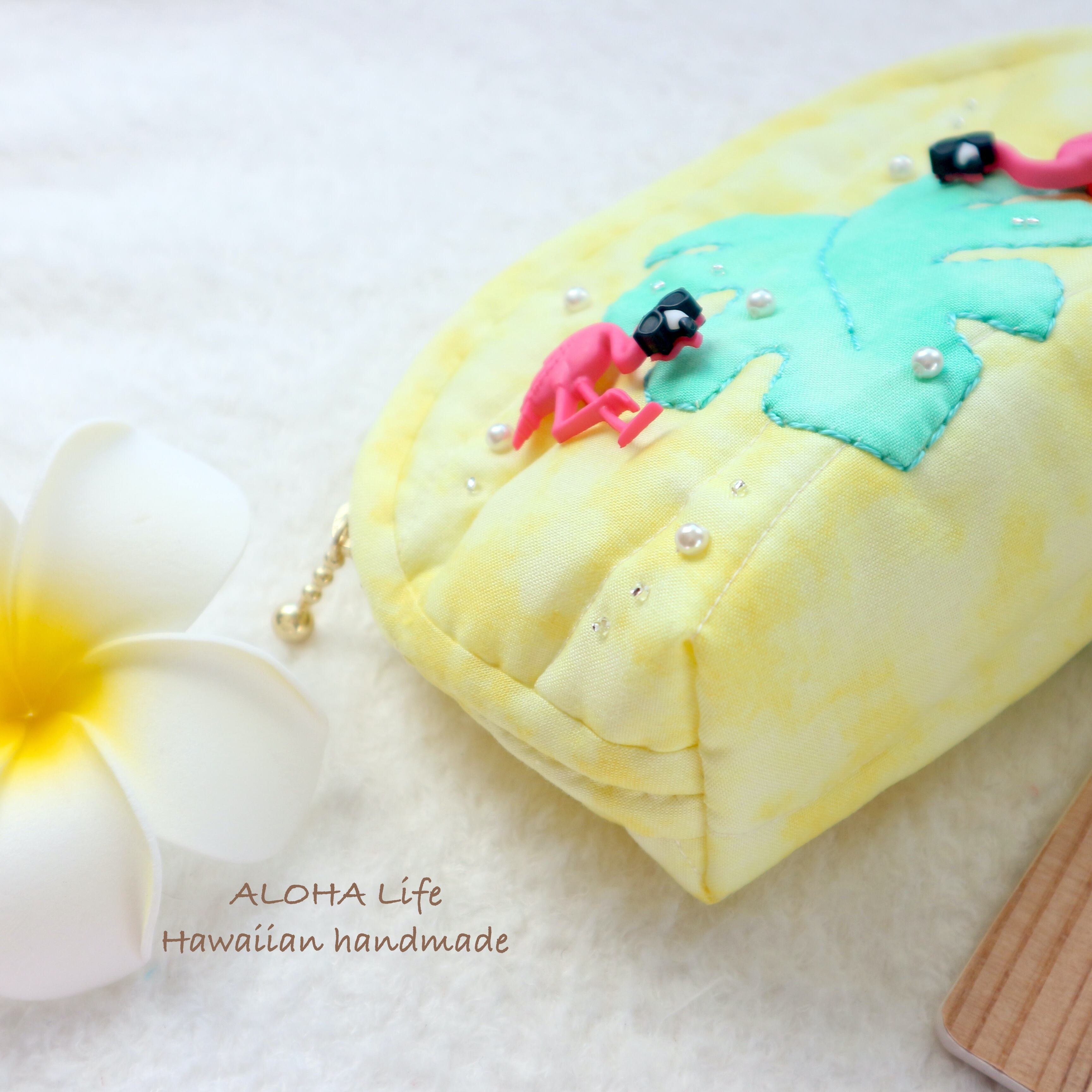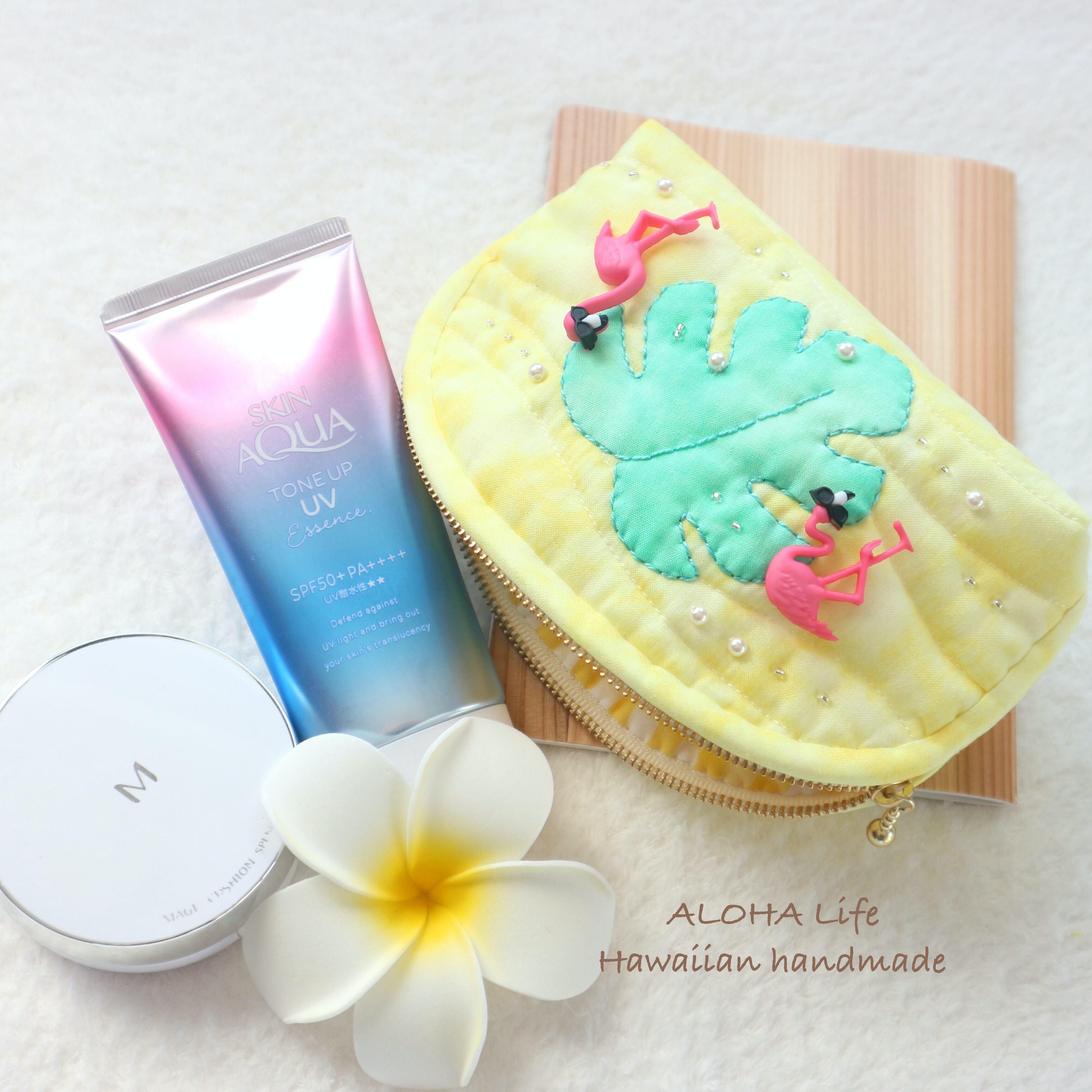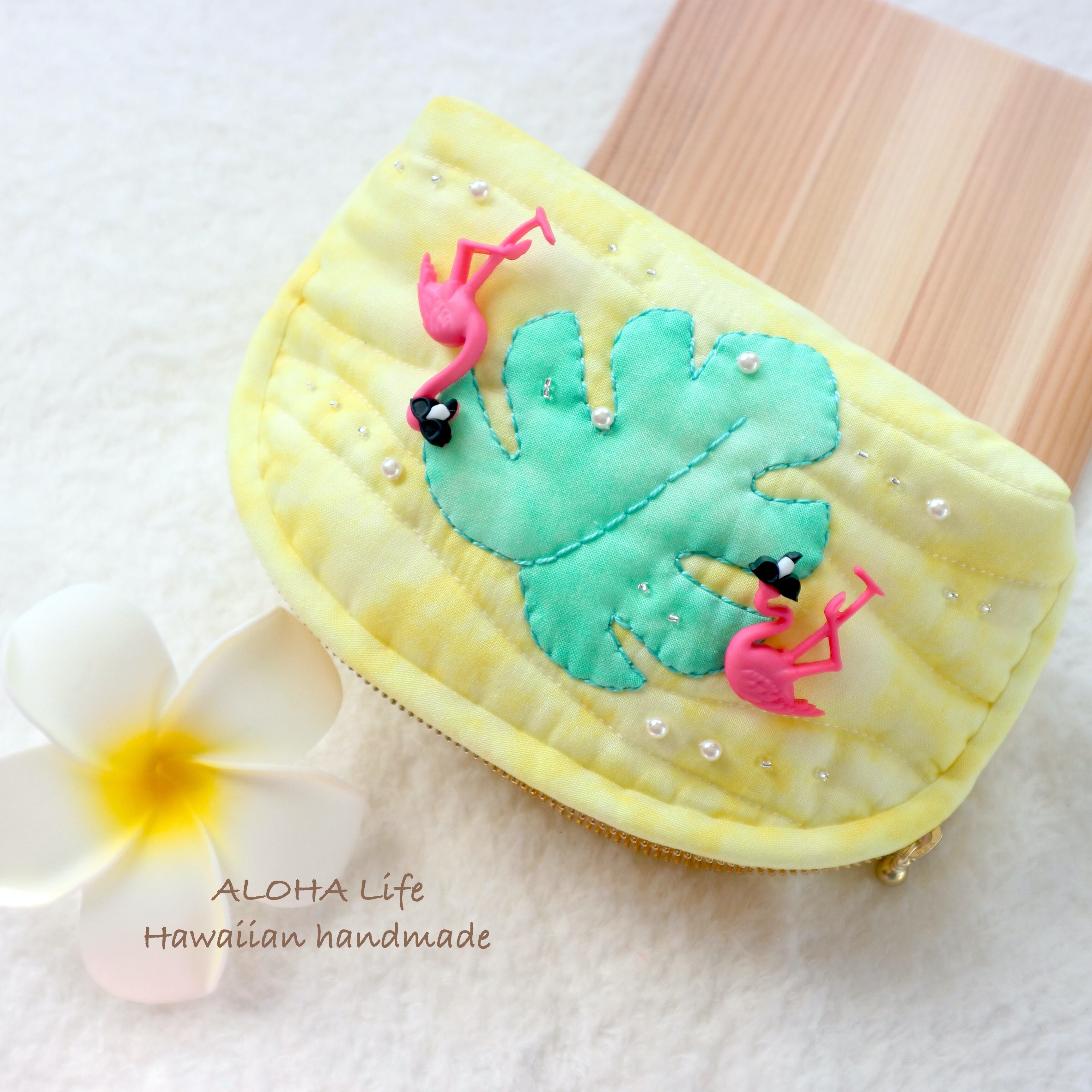 Hawaiian quilt pouch Flamingo×monstera