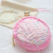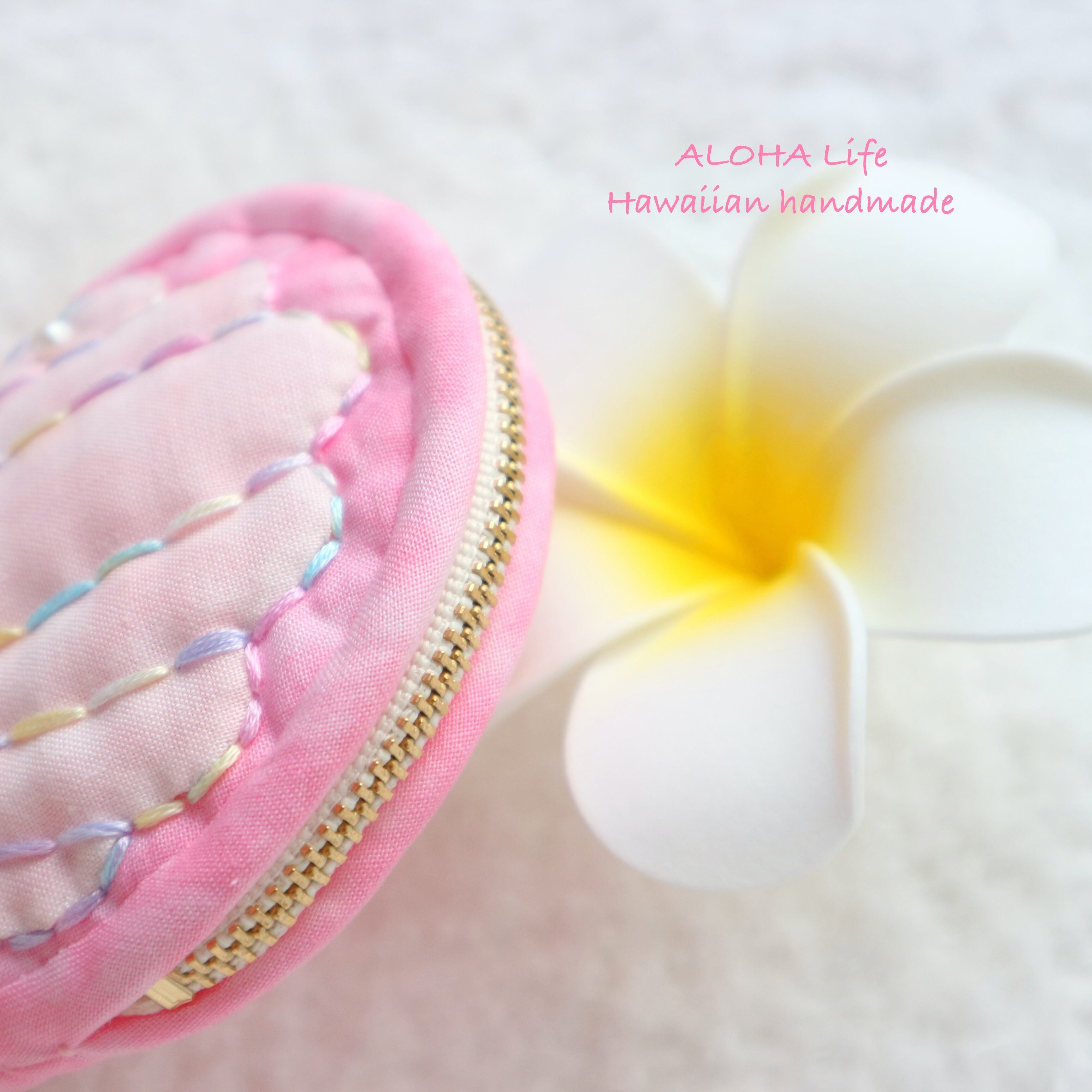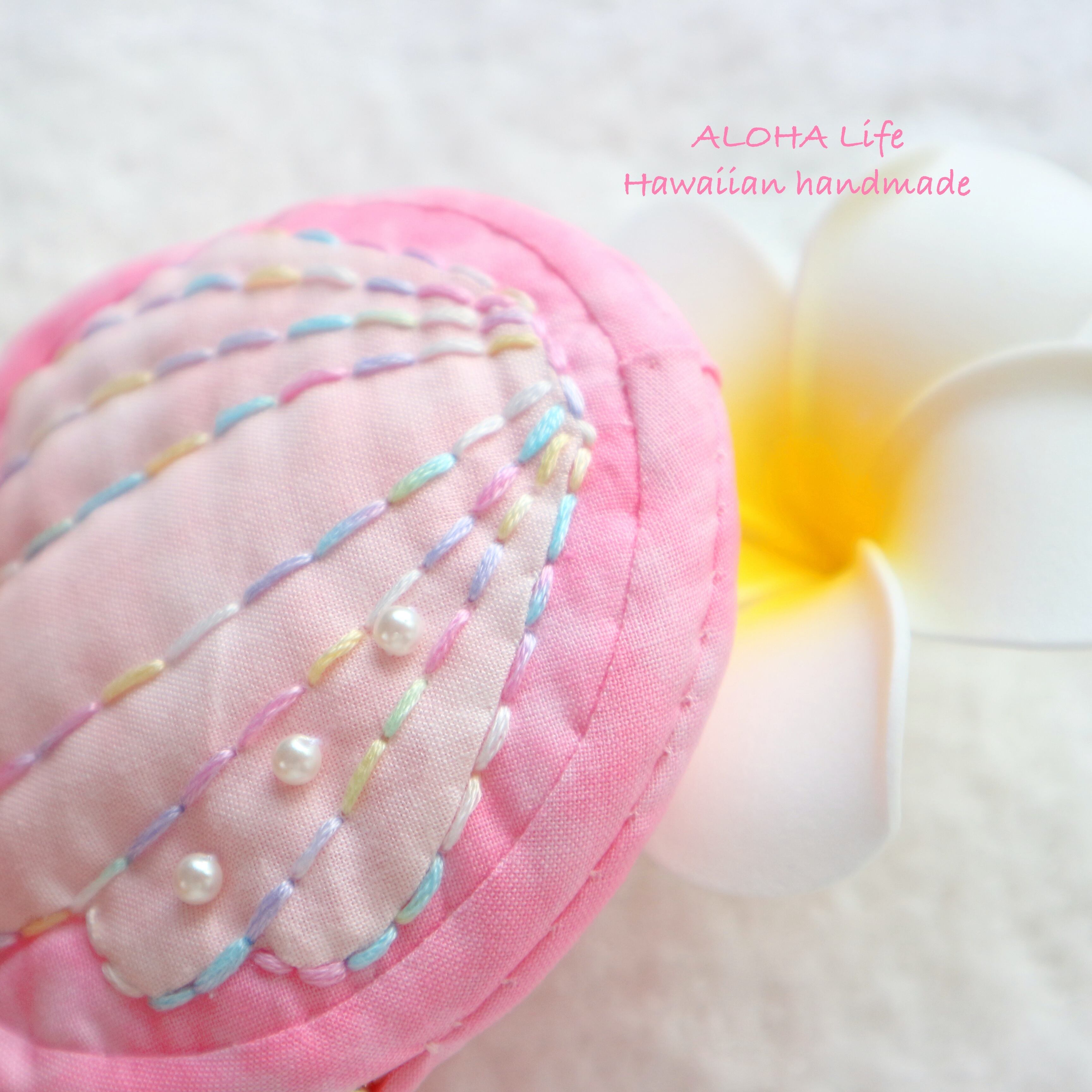 シェルの模様は一針一針、手縫で丁寧にステッチをしてあります