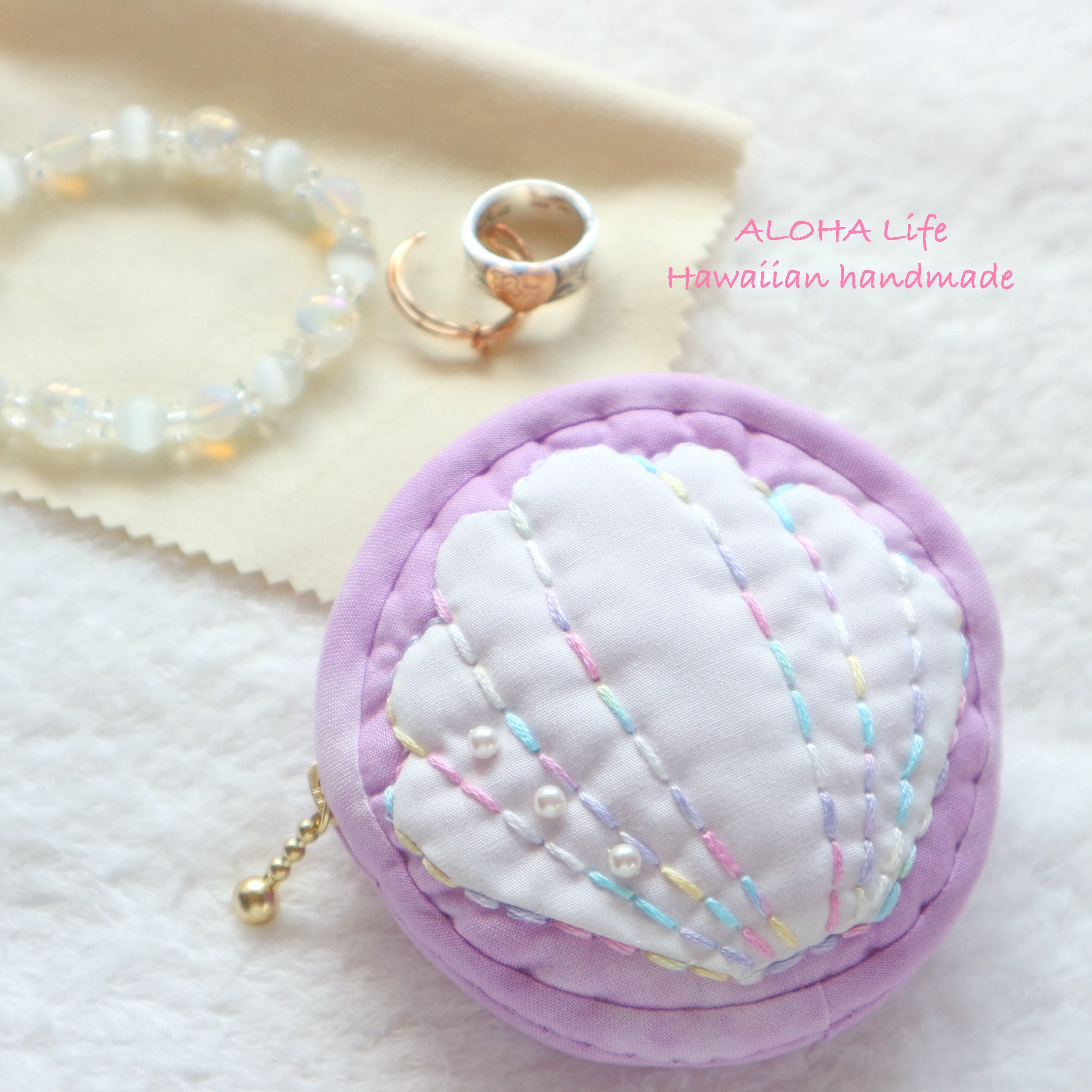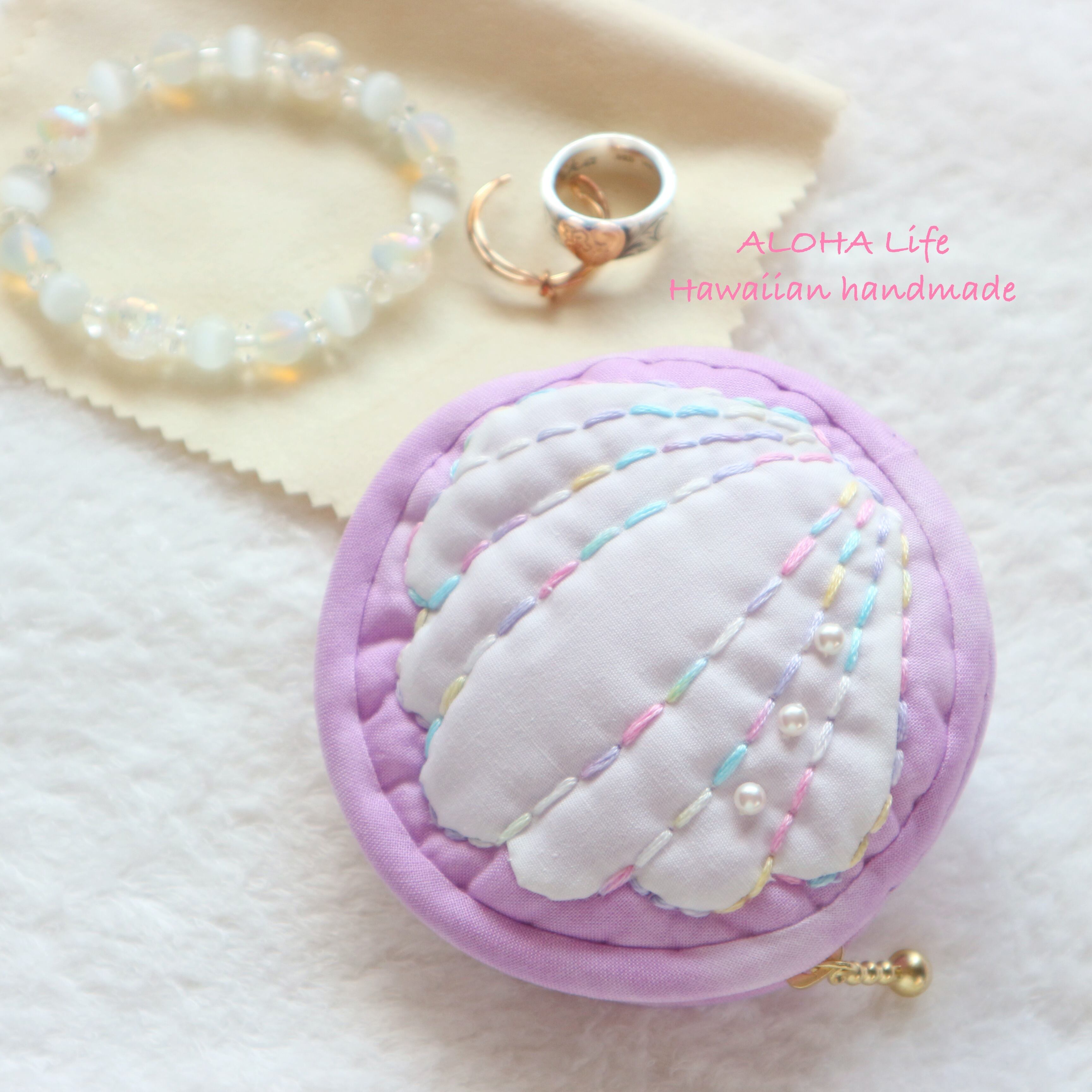 シェルの模様は一針一針、手縫で丁寧にステッチをしてあります