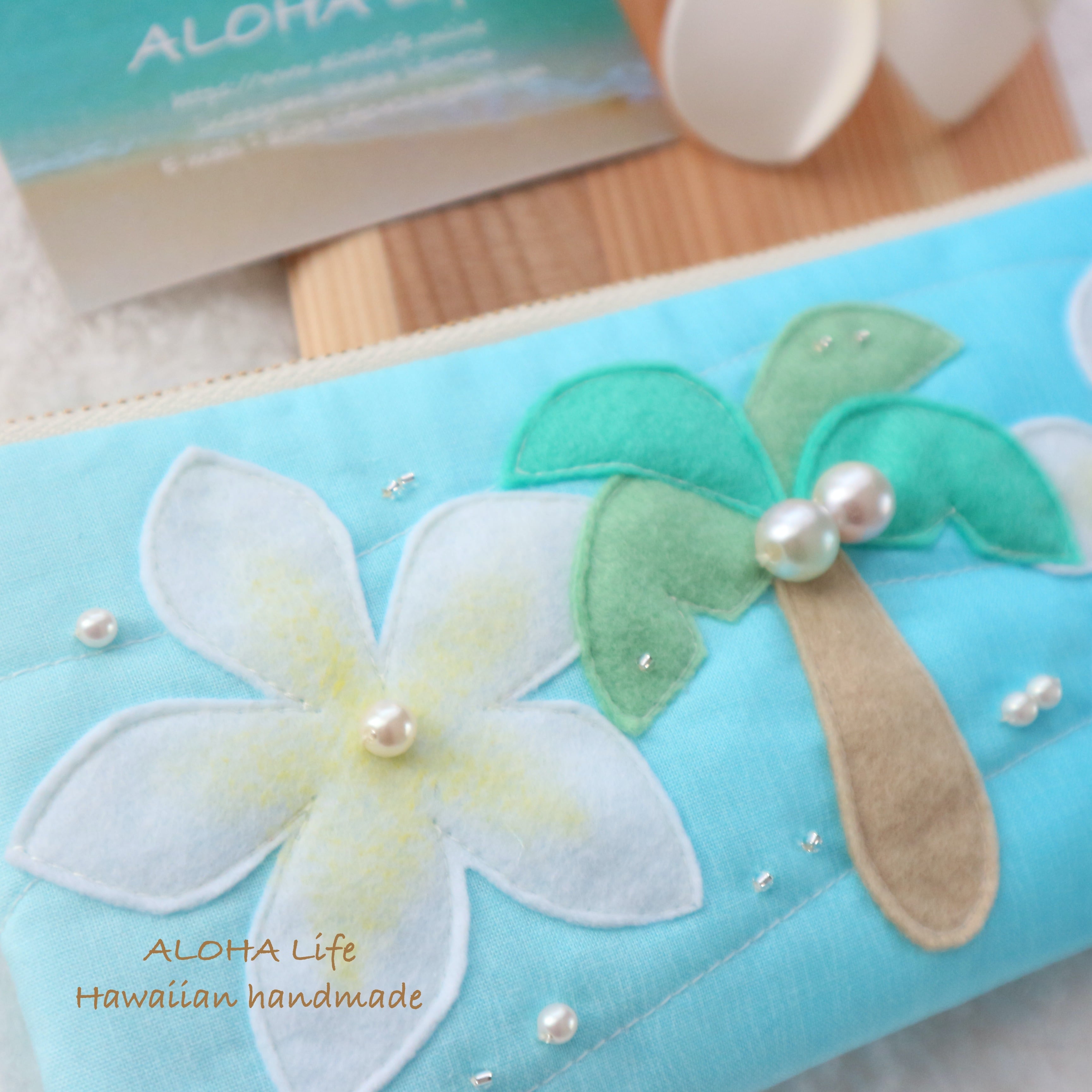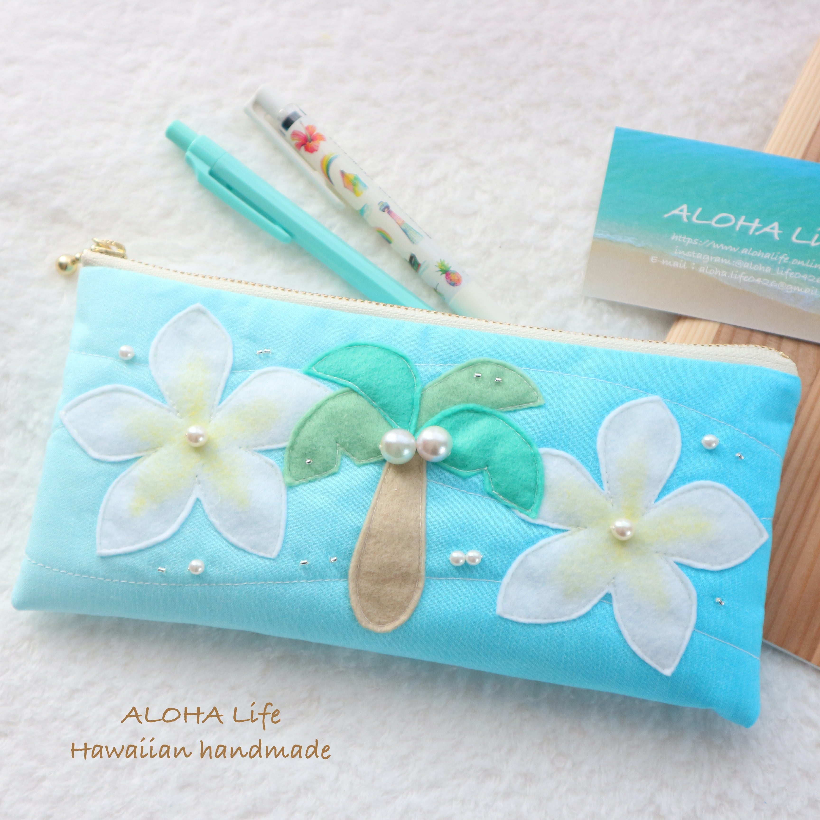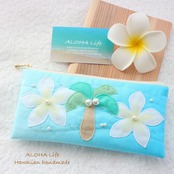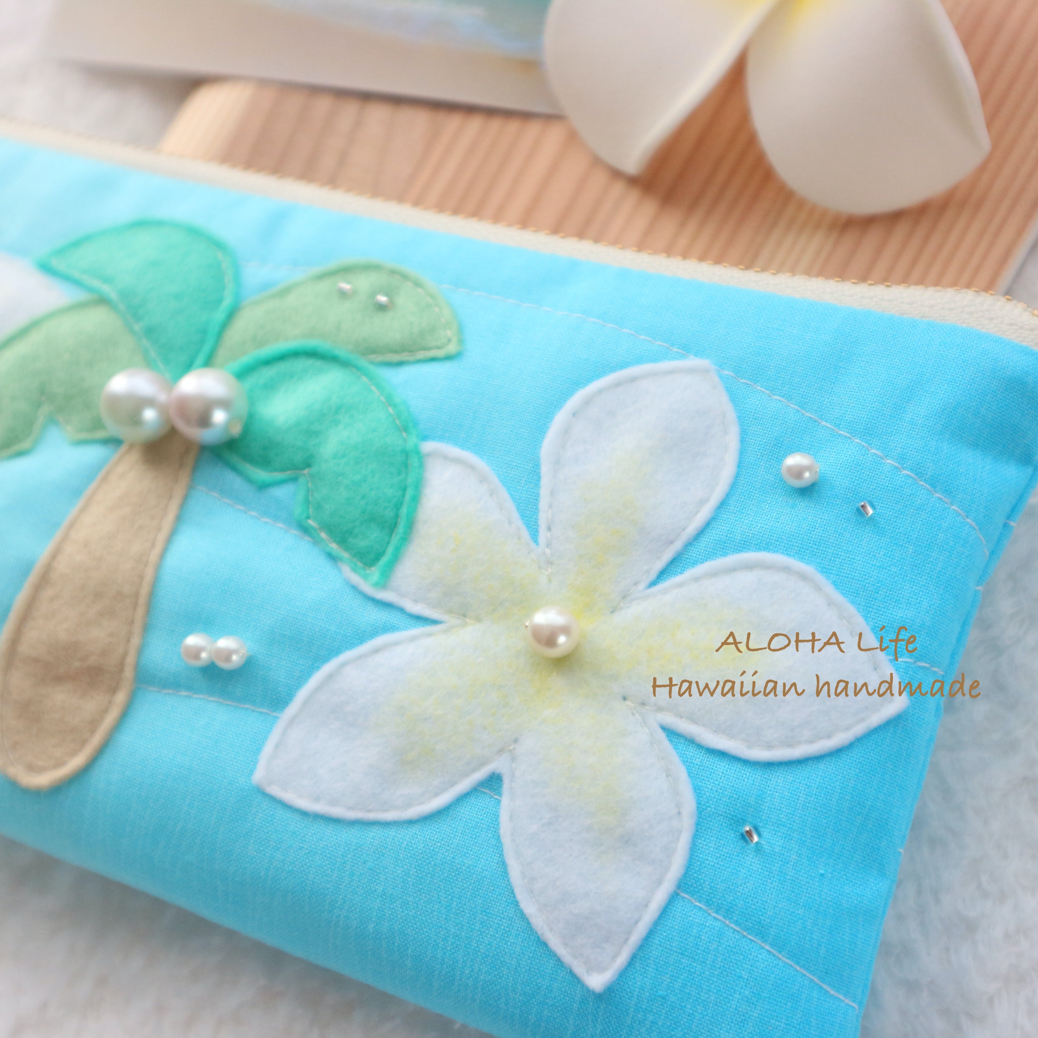ココヤシ×プルメリアデザインのポーチ