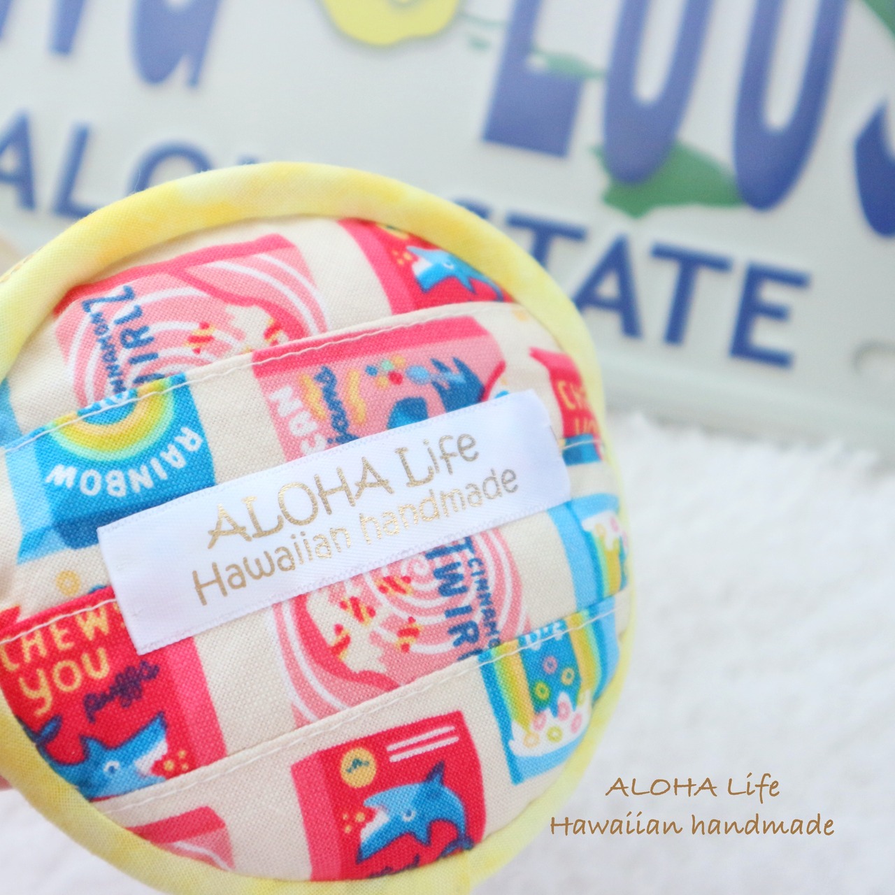 コロンと丸いフォルムと、カラフルなハワイアンデザイン