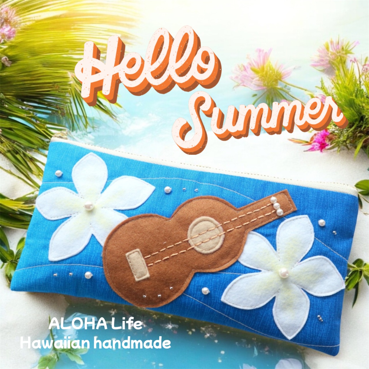 ウクレレ×プルメリアデザインのポーチ